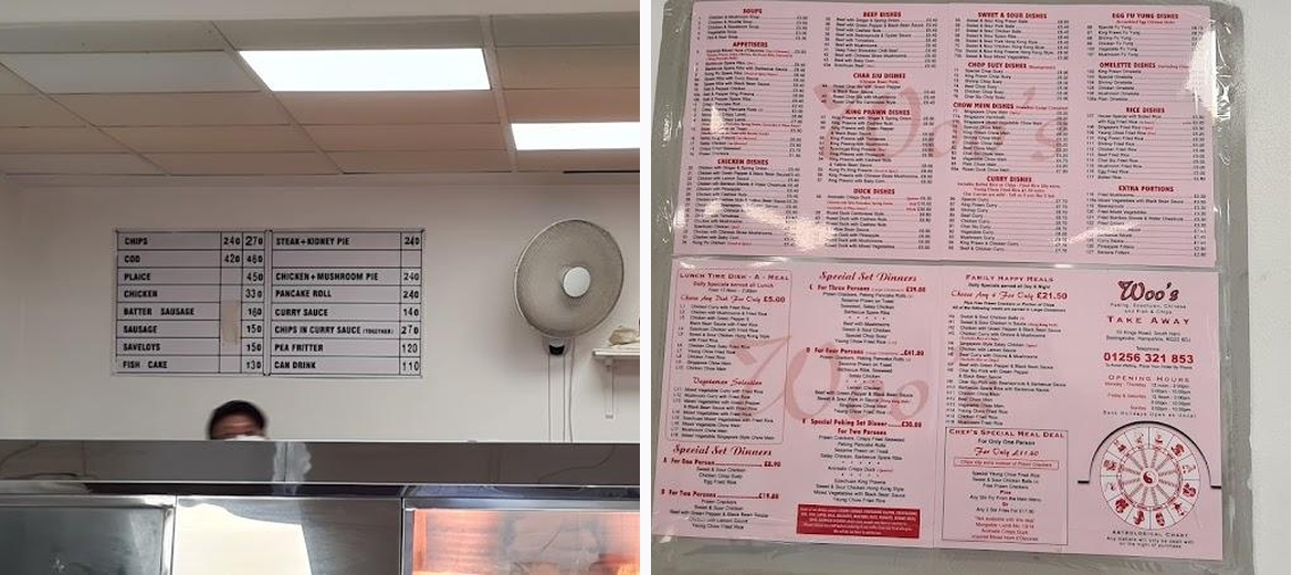 Woo's Takeaway only offers collection services, so plan to pick up your meal rather than eat on-site.